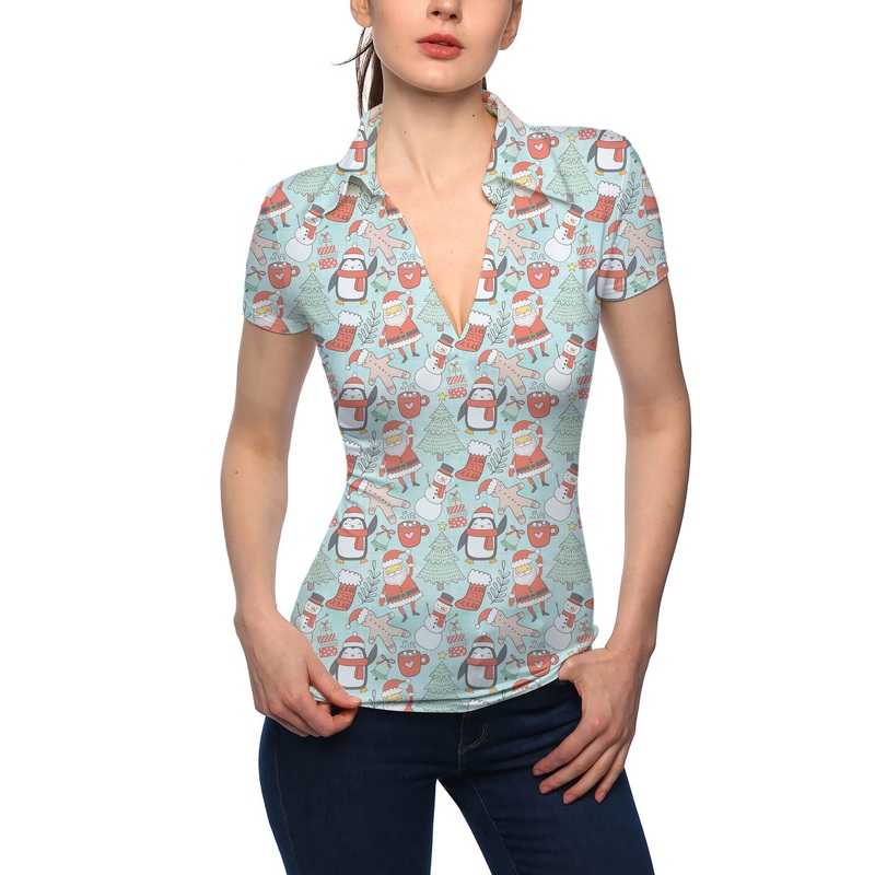 1.StandCollaraccentuateyoursexycollarboneandlookelegantandstylishwithyourfavoritenecklaceorpendant.2.TheV-neckdesigncanimprovetheoveralllineandvisually,complementyourslenderneck.3.Thegolfshirtspairperfectlywithshortskirts,jeans,sportstrousers.4.Occasions:s