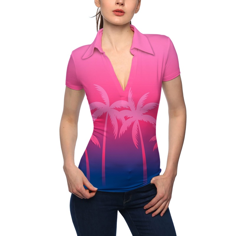 1.StandCollaraccentuateyoursexycollarboneandlookelegantandstylishwithyourfavoritenecklaceorpendant.2.TheV-neckdesigncanimprovetheoveralllineandvisually,complementyourslenderneck.3.Thegolfshirtspairperfectlywithshortskirts,jeans,sportstrousers.4.Occasions:s