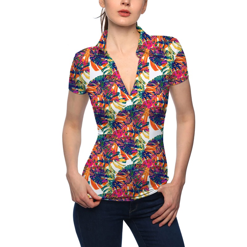 Women’s Red Leaf V Neck Golf Polo