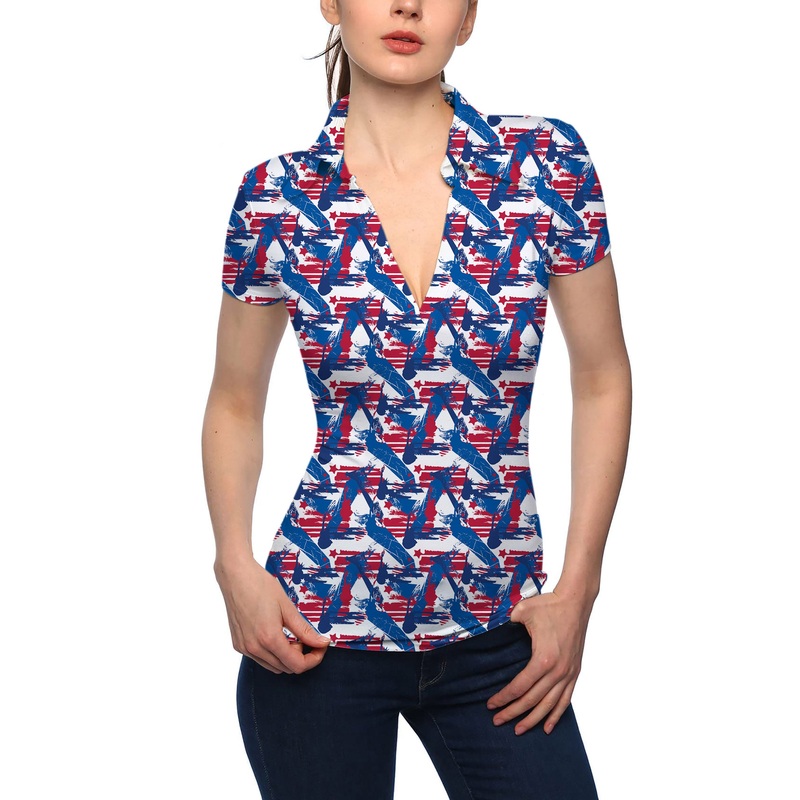 Women’s silhouette statue of liberty V Neck Golf Polo