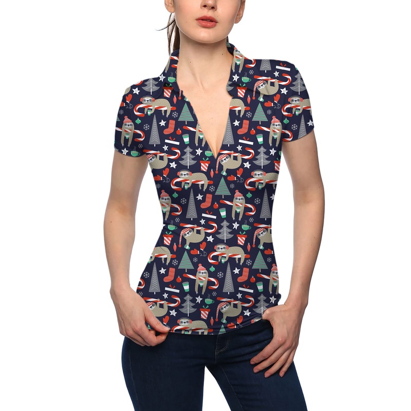 1.StandCollaraccentuateyoursexycollarboneandlookelegantandstylishwithyourfavoritenecklaceorpendant.2.TheV-neckdesigncanimprovetheoveralllineandvisually,complementyourslenderneck.3.Thegolfshirtspairperfectlywithshortskirts,jeans,sportstrousers.4.Occasions:s