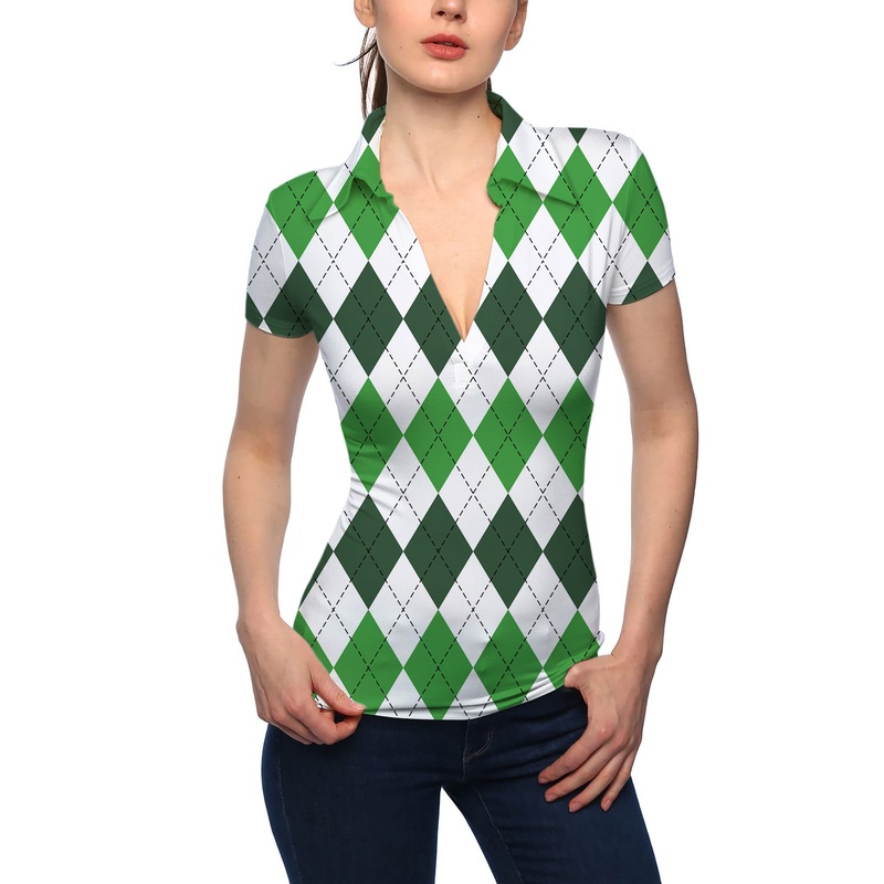 Women’s St. Patricks day Argyle plaid V Neck Golf Polo