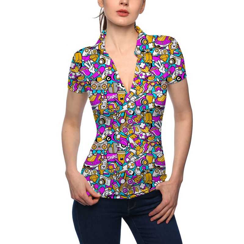 1.StandCollaraccentuateyoursexycollarboneandlookelegantandstylishwithyourfavoritenecklaceorpendant.2.TheV-neckdesigncanimprovetheoveralllineandvisually,complementyourslenderneck.3.Thegolfshirtspairperfectlywithshortskirts,jeans,sportstrousers.4.Occasions:s