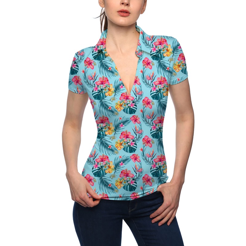 1.StandCollaraccentuateyoursexycollarboneandlookelegantandstylishwithyourfavoritenecklaceorpendant.2.TheV-neckdesigncanimprovetheoveralllineandvisually,complementyourslenderneck.3.Thegolfshirtspairperfectlywithshortskirts,jeans,sportstrousers.4.Occasions:s