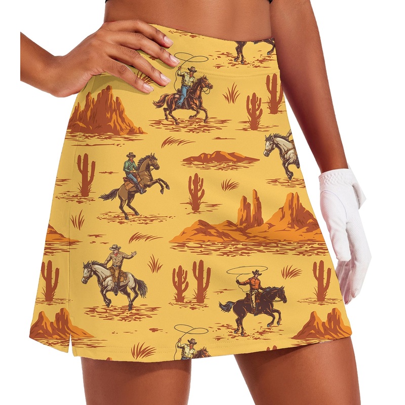 Women’s west cowboy Golf Skirts Inner Shorts Pocket