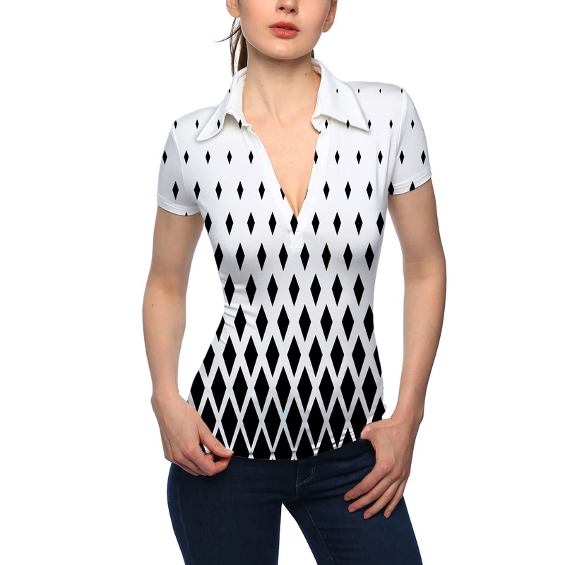Women’s White Black Gradient V Neck Golf Polo