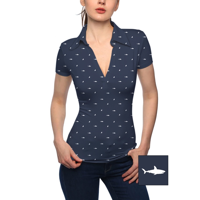 Women’s White Shark and Fin Custom The Background Color V Neck Golf Polo