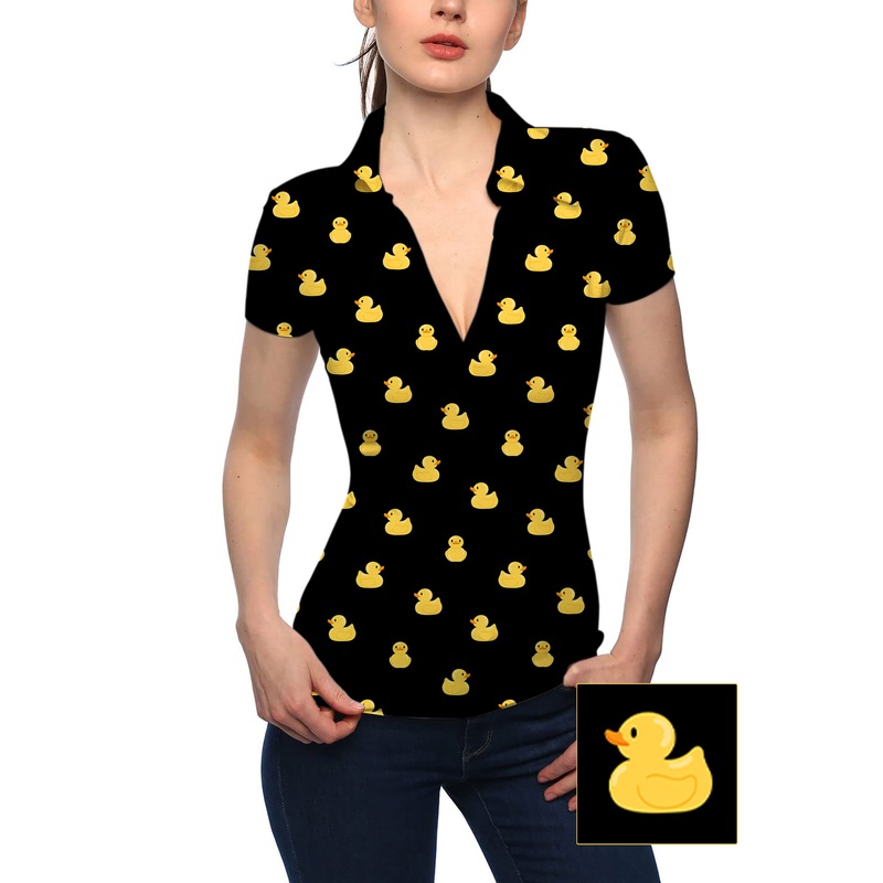 Women’s Yellow Rubber Duck Custom The Background Color V Neck Golf Polo