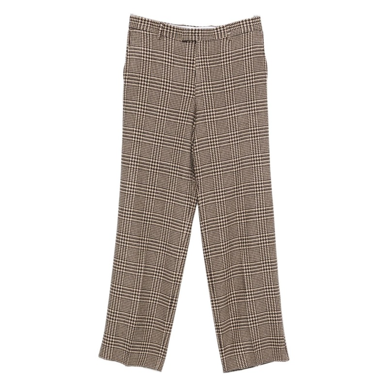 Elevate your professional wardrobe with these sophisticated wool trousers from Emporio Armani. Featuring a timeless glen plaid pattern in warm brown and tan tones, these dress pants showcase impeccable Italian craftsmanship and attention to detail. Crafted