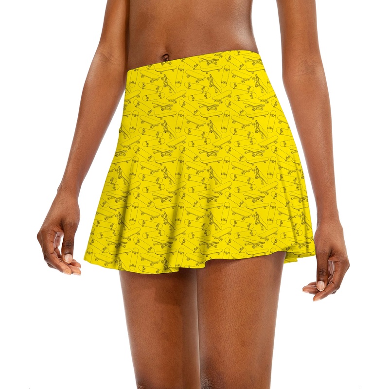 Yellow Skateboard Women’s Athletic Golf Skorts Flared Skirts